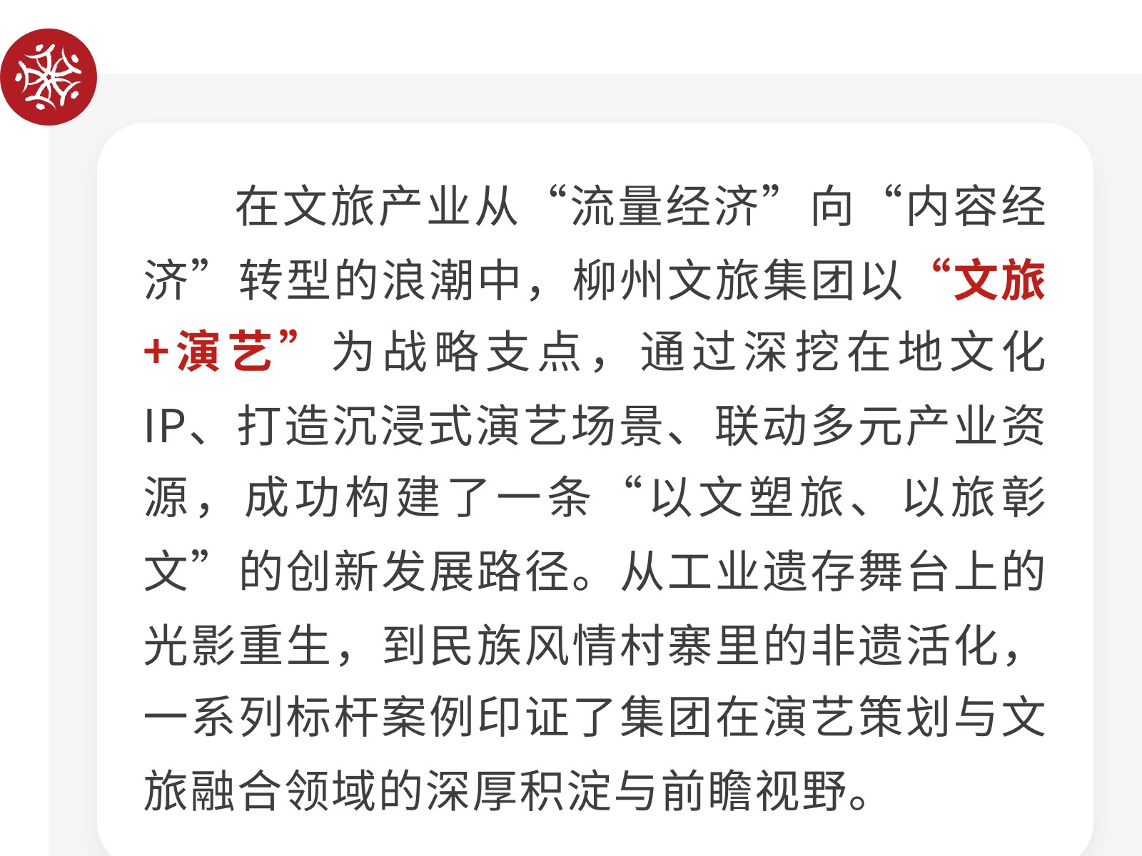 文旅融合新篇章:柳州文旅集團以演藝為媒,激活城市文化基因 發(fā)布時間:2025年09月26日 10時來源:本站原創(chuàng)瀏覽:59 人次