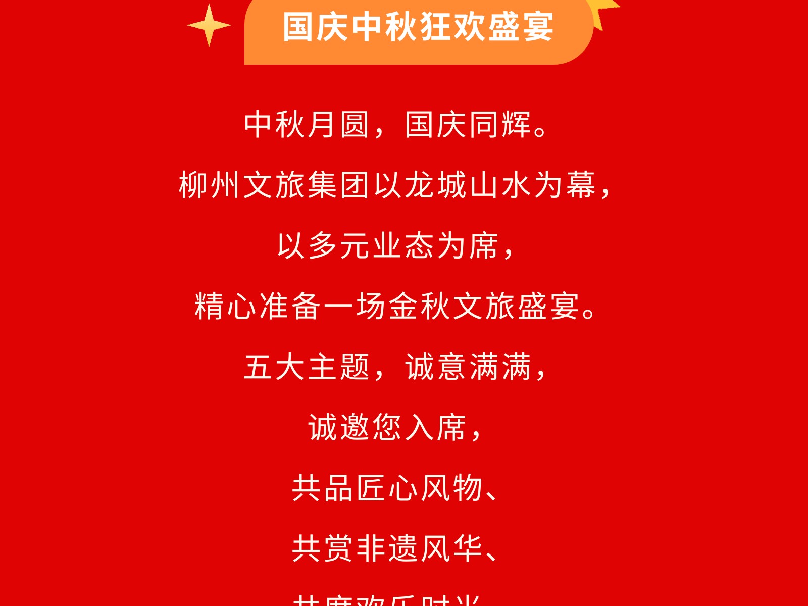 【雙節(jié)同慶,盛情以待】柳州文旅集團邀您共赴一場金秋文旅盛宴 發(fā)布時間:2025年09月30日 16時來源:本站原創(chuàng)瀏覽:34 人次