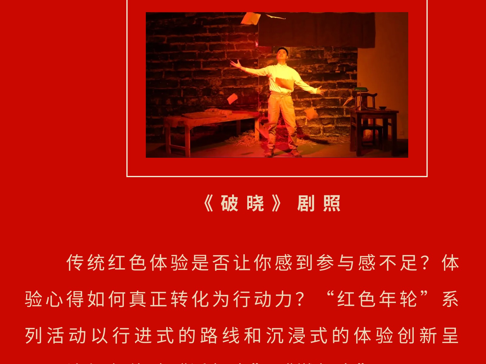 【重磅】一部在火光中刻錄年輪的信仰史詩:“紅色年輪”系列行浸式體驗序章《破曉》震撼上線 發(fā)布時間:2025年04月14日 15時來源:本站原創(chuàng)瀏覽:45 人次