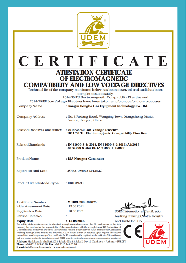制氮機(jī)ce證書(shū)